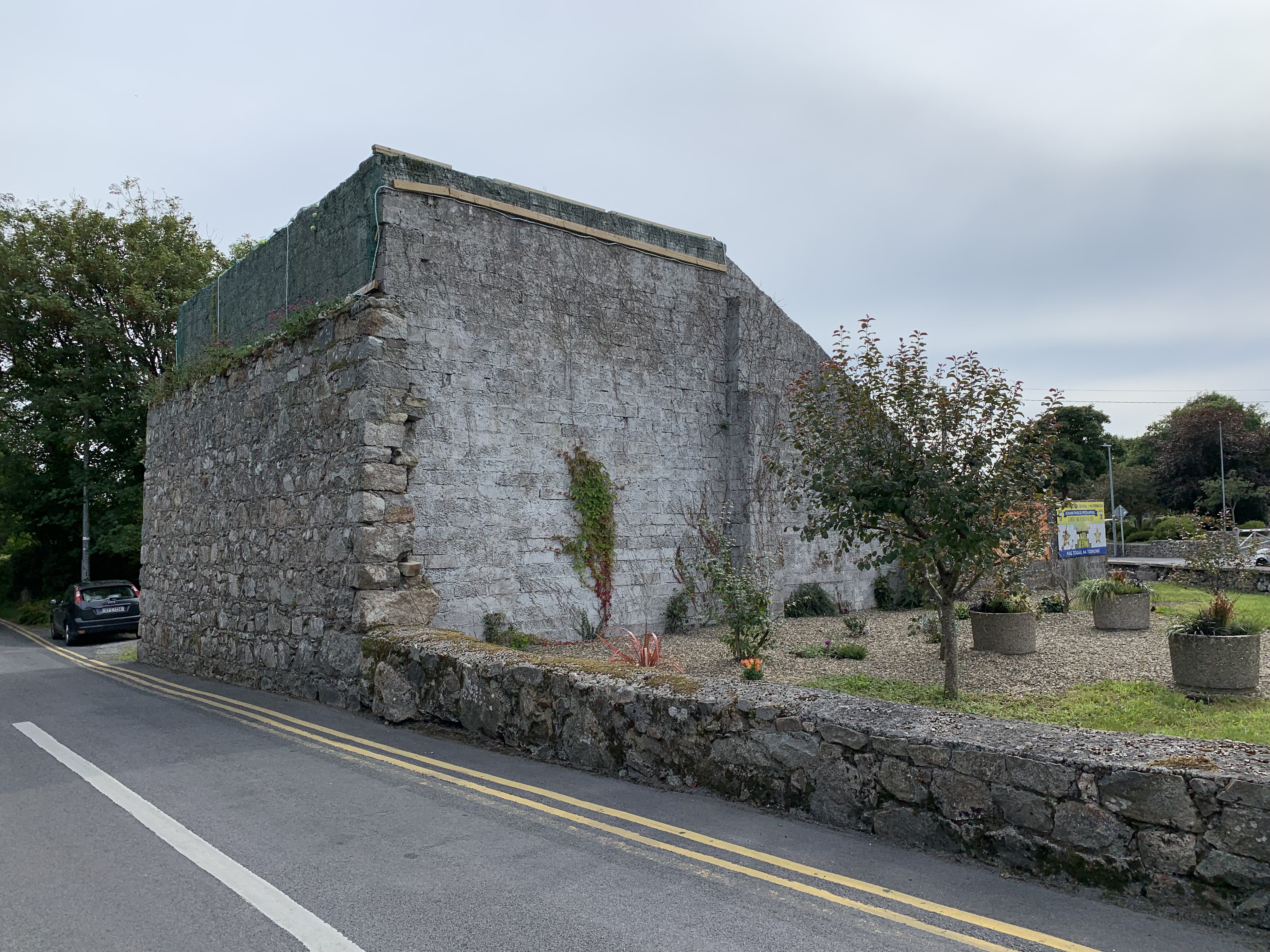 Top two photographs showing renovation of alley in June 2020 by local men Denis O’Dwyer and John McMyler. A detailed historical account supported by including newspaper clippings is available on the bearna beo website. The website team kindly allowed the photographs to be reproduced here. The following historical account is taken from the website: The facility, which sits opposite Bearna Church was built in the early 1900s by the local landlord, Marcus Lynch, who lived in Barna House. Legend tells that his son was captured and killed during the Boer War (1879-1915) and that a local chief sent his son, Osmond Tisani, to Galway as a kind of compensation. He lived with the family, spoke Irish fluently, and played hurling for Rahoon. He was also thought to have been a very good Irish dancer, and was reportedly popular among the student population in Galway around World War I. The handball alley was built for his amusement by Marcus Lynch in c. 1905. The original cut stone walls can still be seen around parts of the outside shell. The additional concrete part was added about 30 years later. When Marcus Lynch died in 1916 his estate was sold, but the handball alley, along with the church and school (which was located on the site of the existing house beside the alley) were left to the community. The sport proved so popular that there were often queues of players lined up outside the walls waiting for their chance to play. At a tournament in 1929, the local parish priest, Fr Coyne, put up the prizes. Handball grew in popularity during the 1930s, with Galway City businessmen, including the jeweller, William Faller and draper, Mr Forken, along with Mr Francis from Spiddal, sponsoring prizes for tournaments. One article from the Connacht Tribune in September 1931 stated that 40 players had signed up in a bid to win gold medals! The games attracted huge crowds, who gathered at the end of the three-walled structure. The construction of a new road through Bearna, however, took away some of that space around the site in the 1960s, and a west-facing wall was subsequently added to contain the play. In 1933, Bearna hosted a series of matches which attracted teams from UCG (now NUIG) and the CYMS (Christian Young Men’s Society). Among the players were various Irish champions of the game. Handball continued to be played during World War II, although there is little reporting of it. Coverage of the local game was revived in the 1960s, however, and an appeal was made in 1961 for a new site, as improvements to the main road would involve cutting across part of the court (most likely the viewing area behind it, rather than the court itself). There was great newspaper coverage of the club in the late 1970s and early 1980s, thanks to Norah Anne Kavanagh and others who included the club news in the Barna Notes in the Connacht Tribune. The sport was so popular that there was talk of putting a roof on the handball alley so that it could be used all year round. Permission was sought, and granted, in October 1981. Sadly, with Ireland heading into a major recession, the money could not be raised and the planning permission eventually lapsed. This coupled with emigration of the young men and a decline in the popularity of the game caused the facility to become a veritable canvas for graffiti artists. Another attempt was made to roof it in 2008, but Galway County Council refused permission. This was appealed to the Planning Appeals Board, which concluded that a roof would have an “adverse impact on the amenities and character of the local landscape.” The exterior today shows some signs of what the cut-stone structure may have originally looked like when built in 1905, but the inside became a far cry from what it was originally designed, with graffiti covering the markings and making it impossible to see the ball. However, a long-held plan to transform the ball alley back to its original function has taken its first steps. It is envisioned that this will be the crown jewel in Bearna’s attempts to find success once again in the Tidy Towns competition – as it is the first thing that visitors to the village meet as the come west along the road from Galway City. Denis O’Dwyer and John McMyler have taken on the task of reclaiming the handball alley for the community and returning it to full use once again. They have painted the four walls and floor/wall markings and plan to put up a net to keep handballs inside the structure. A metal door will be erected soon to keep graffiti artists and other ball players out.